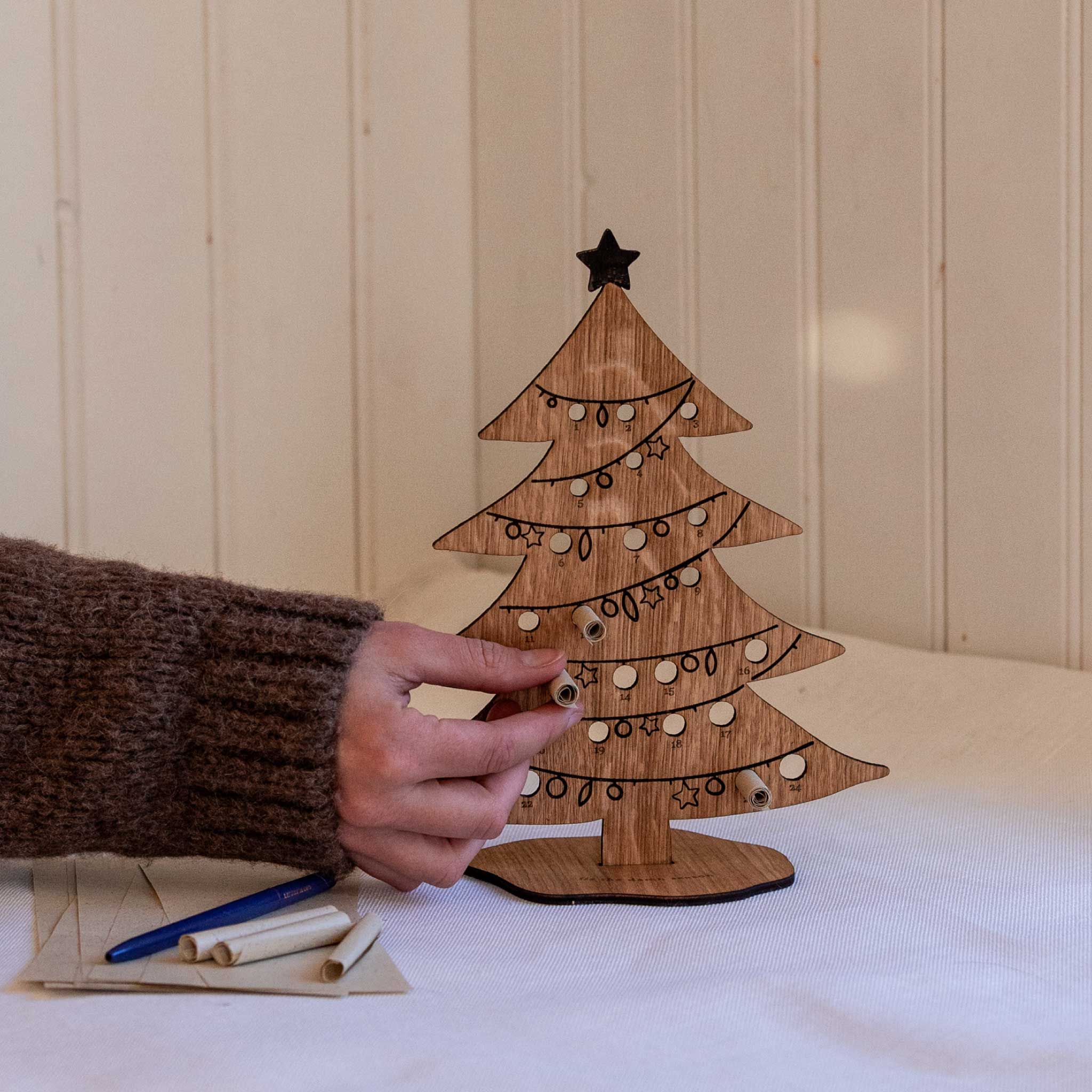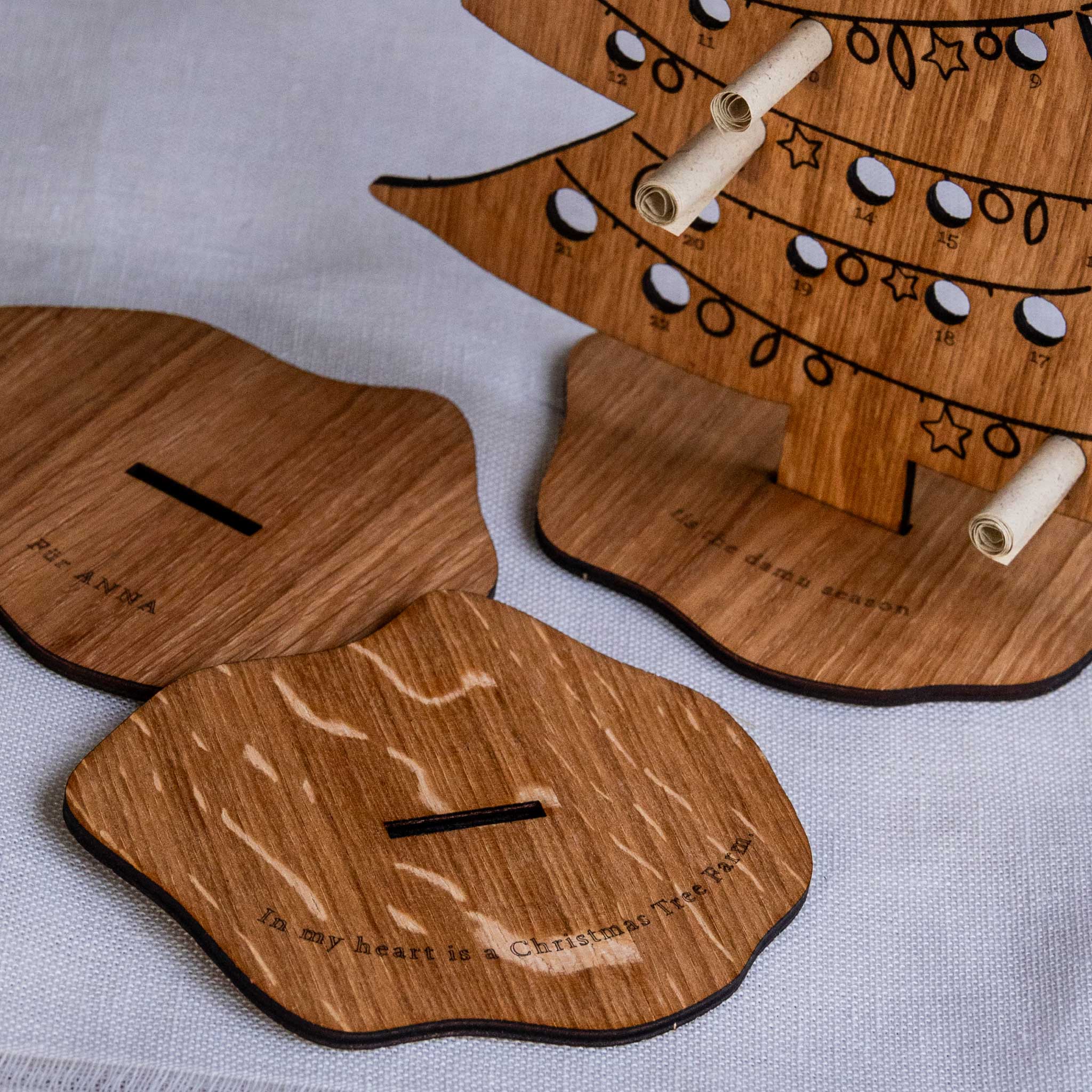 Personalisierte Weihnachtskalender aus Eiche mit Lasergravur